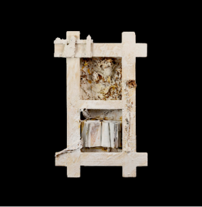 2020, mixed media on wood panel, 10” x 18” x 5”